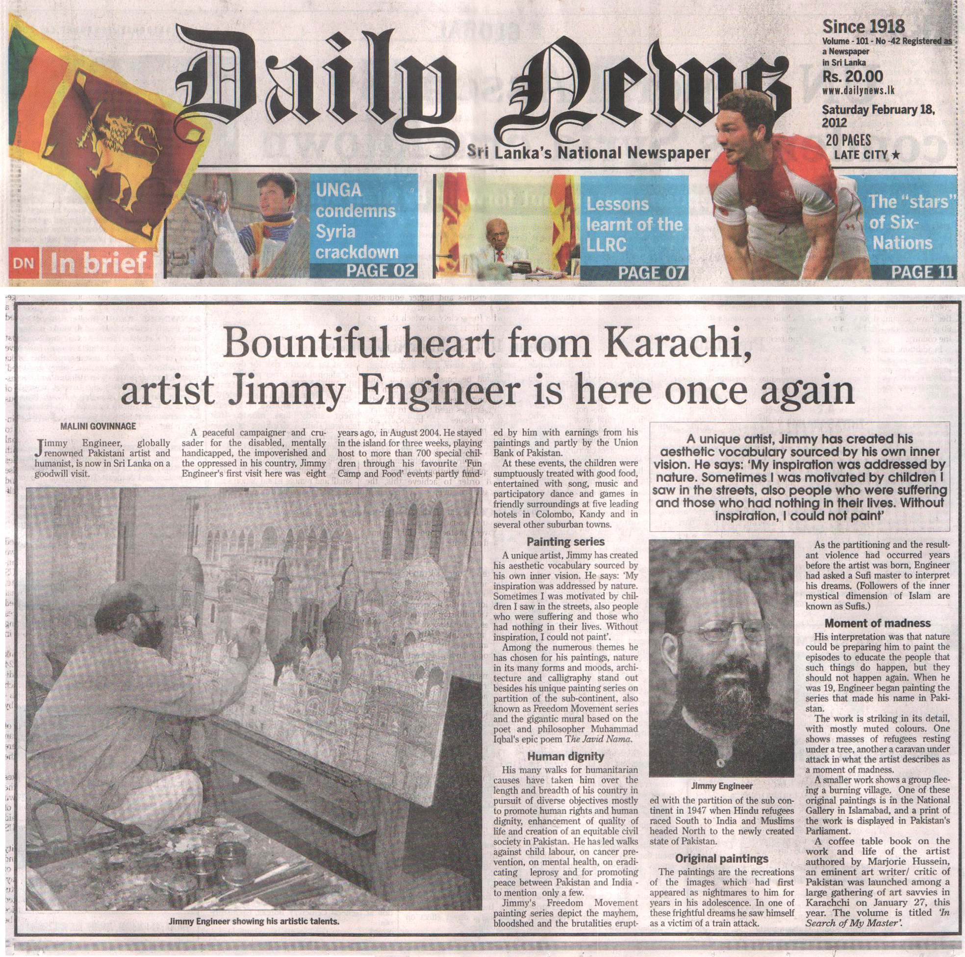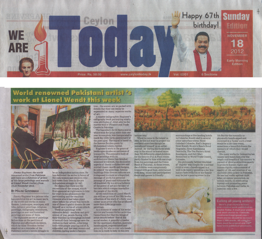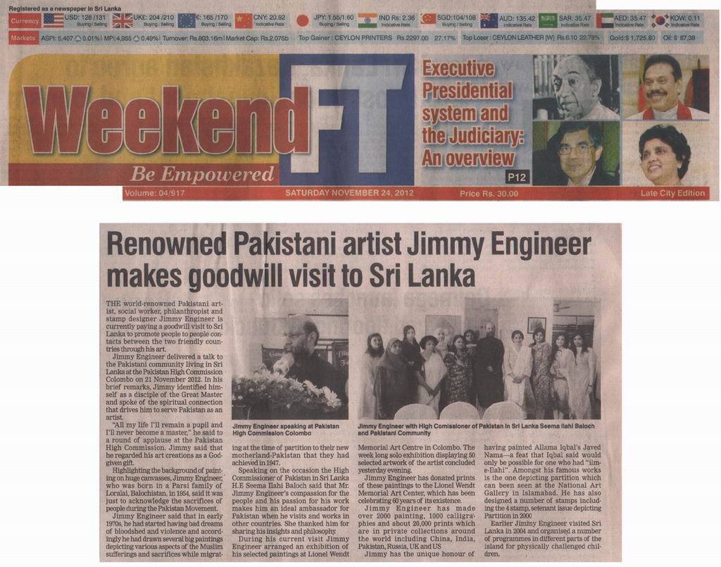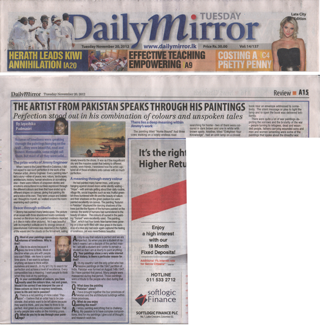 - Daily Mirror (Sri Lanka) 20 Novebmer 2012
