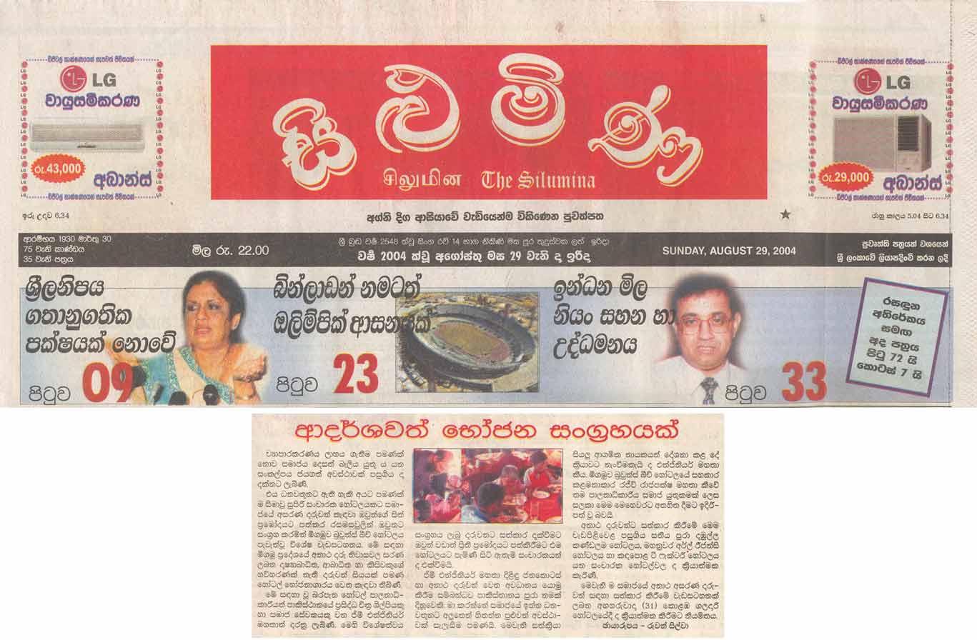 - Daily News Plus, Sri Lanka 27 August 2004
